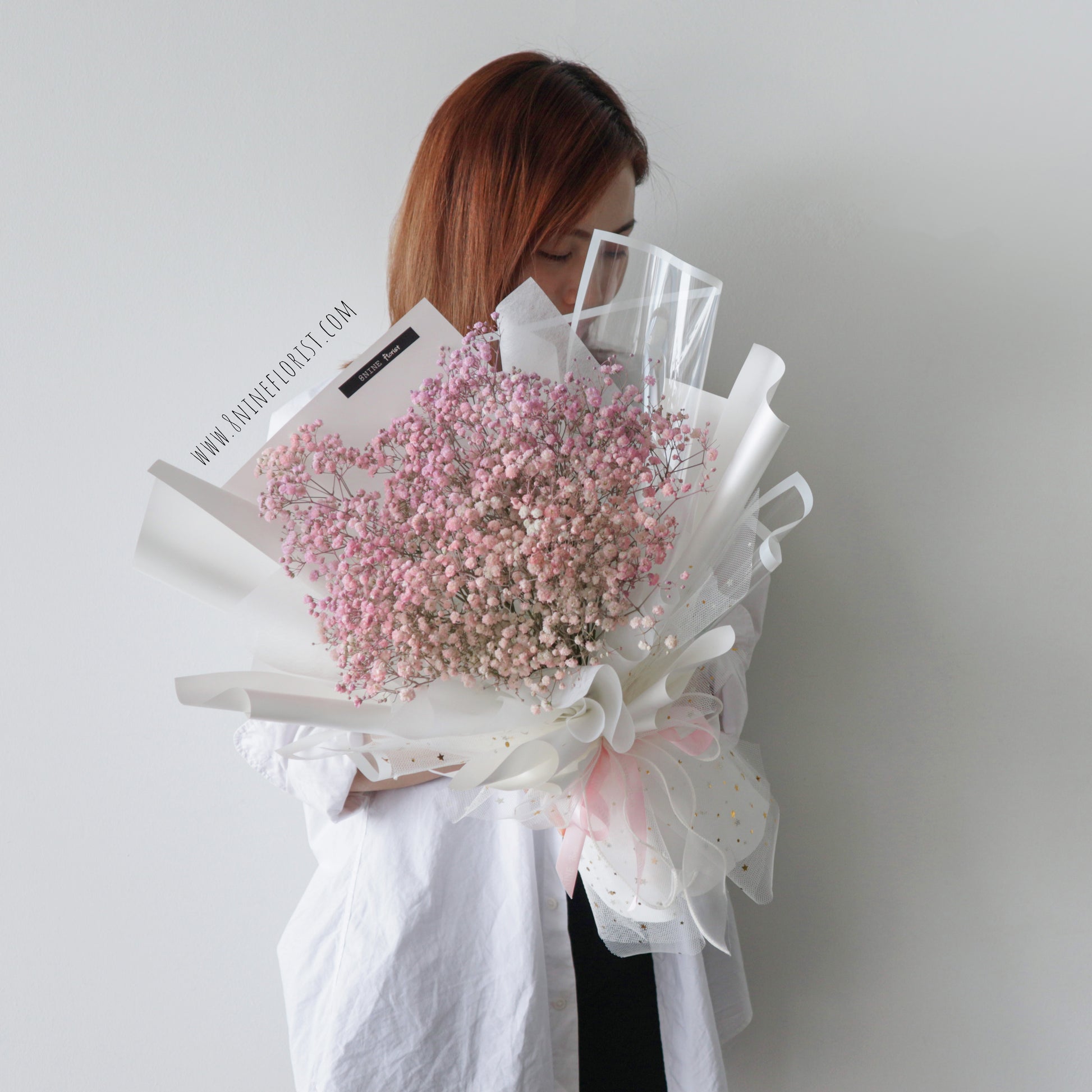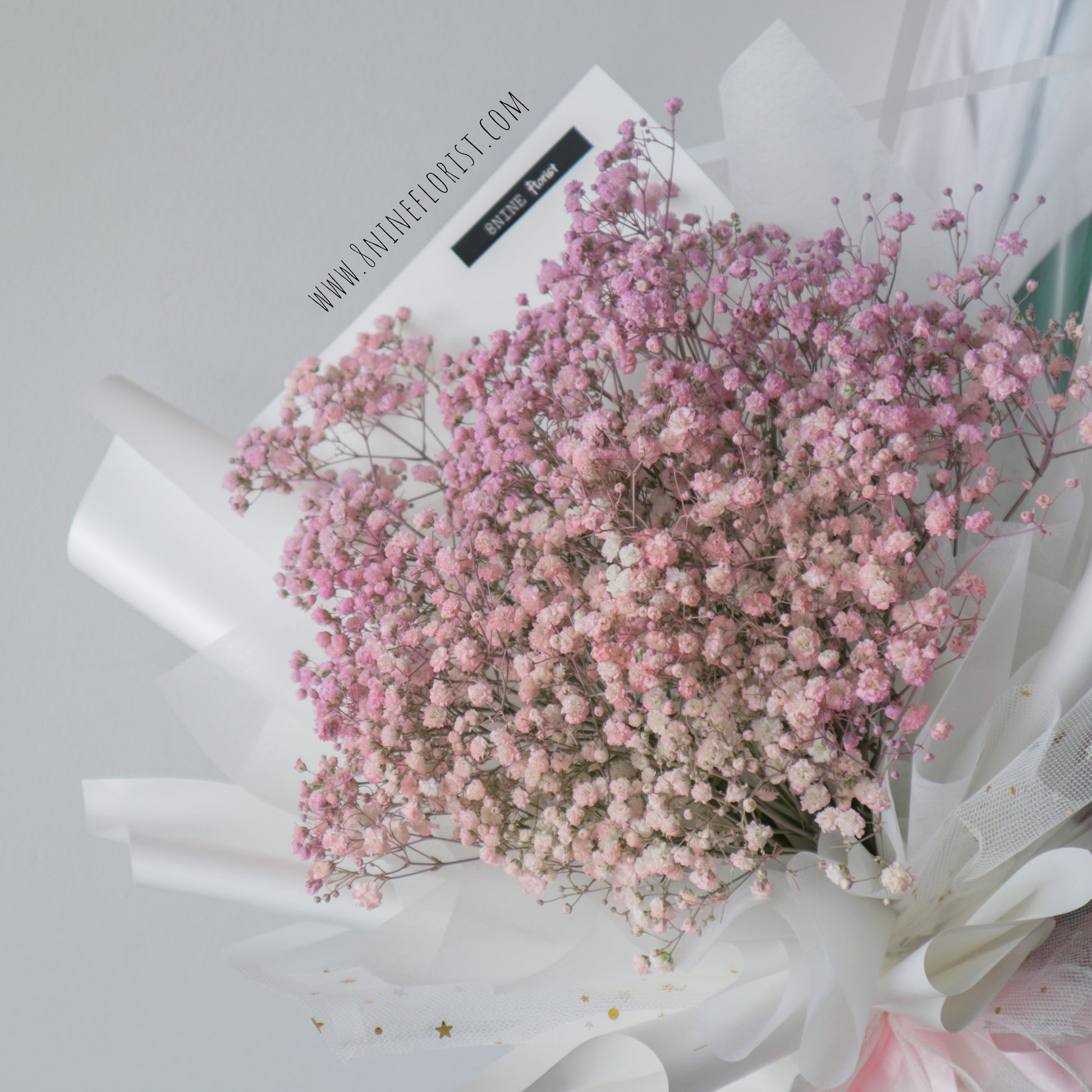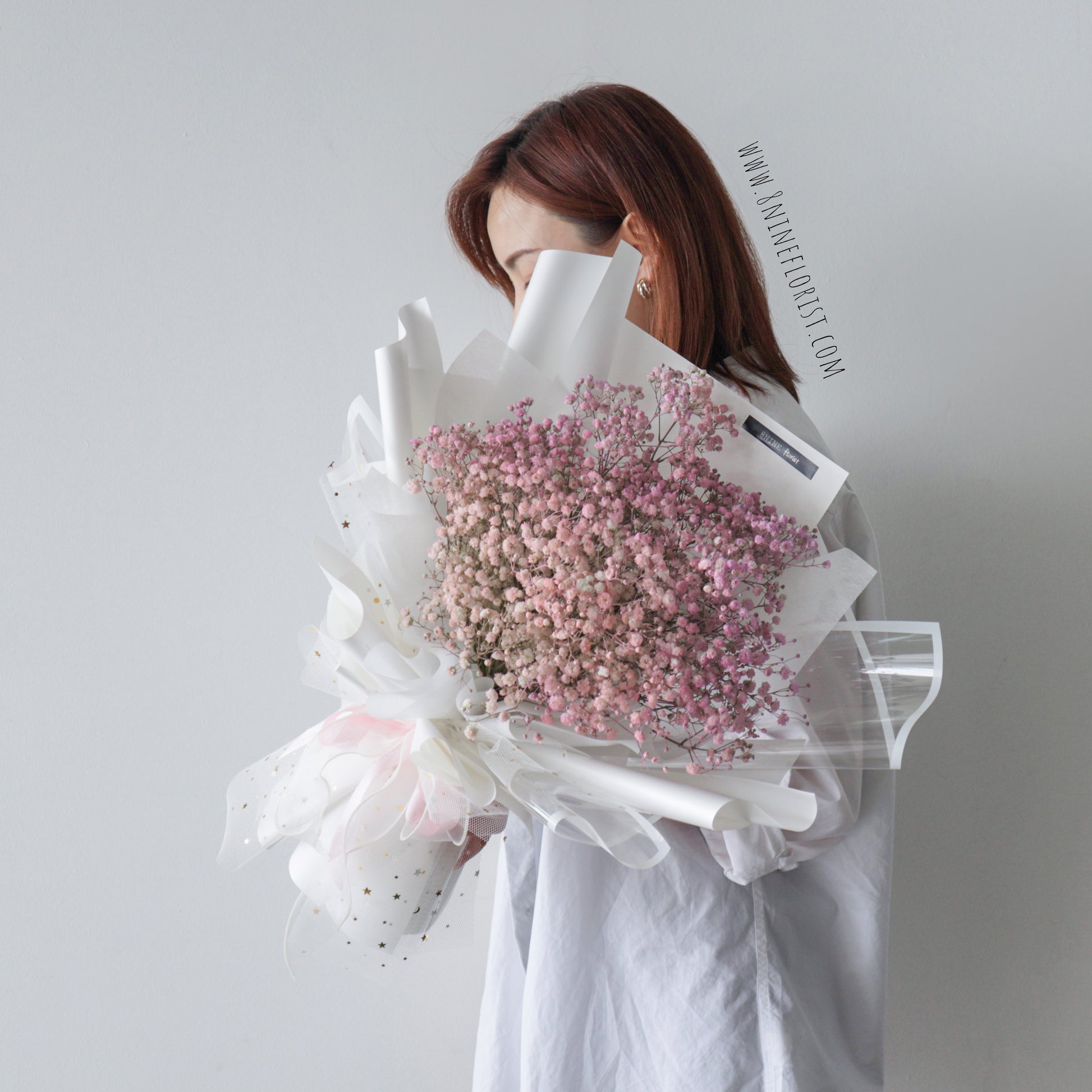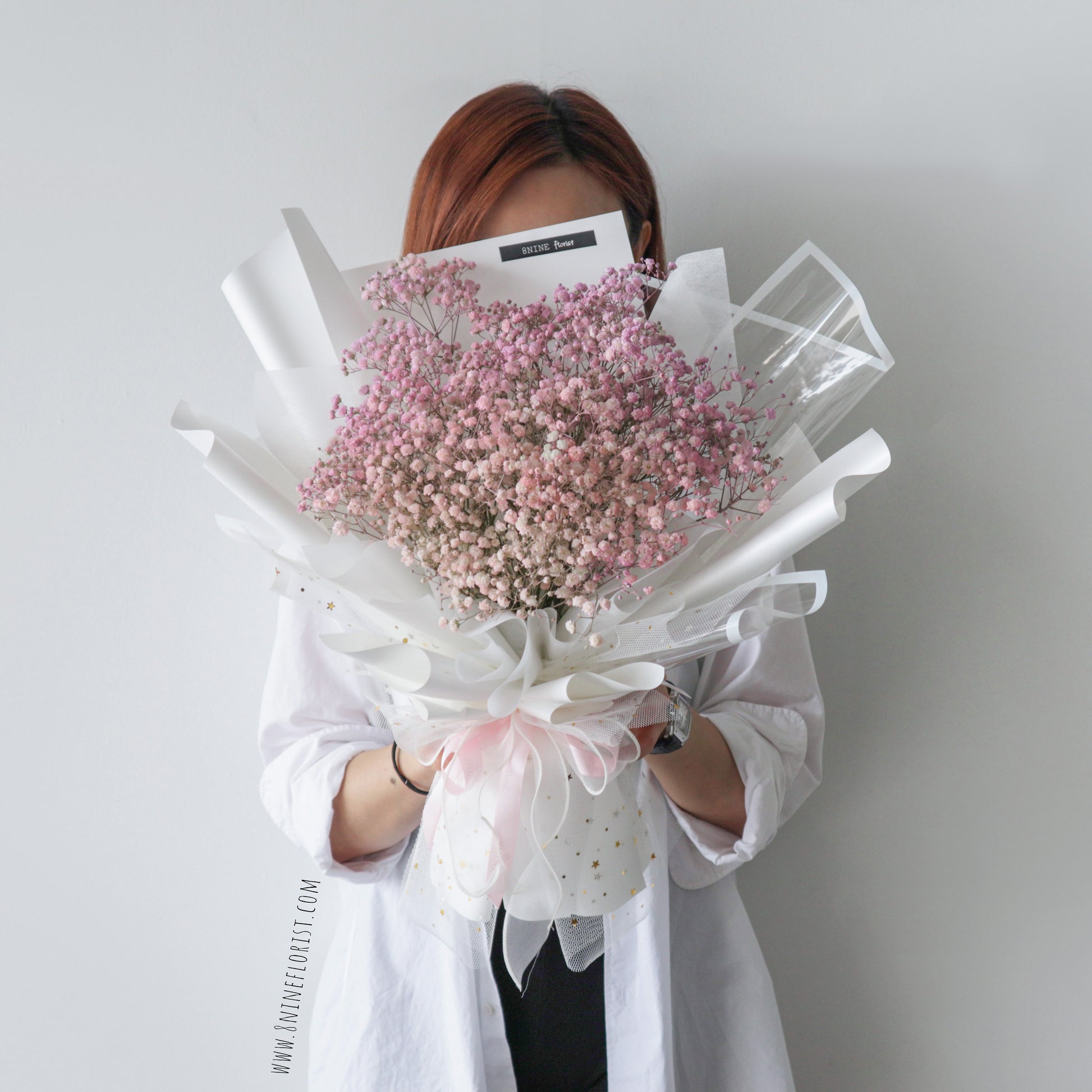 - This flowers bouquet features with baby breath's with a touch of elegant wrapping paper.