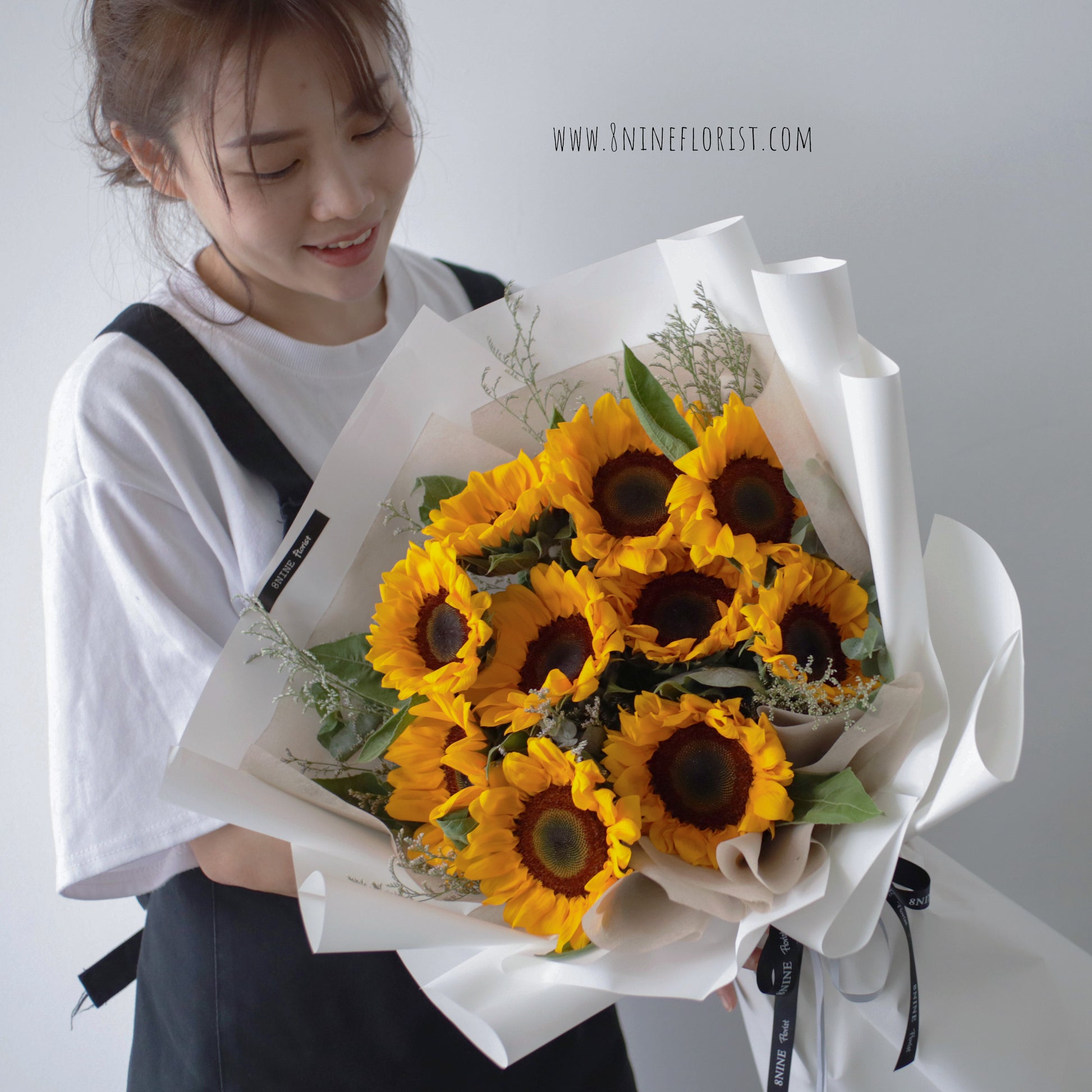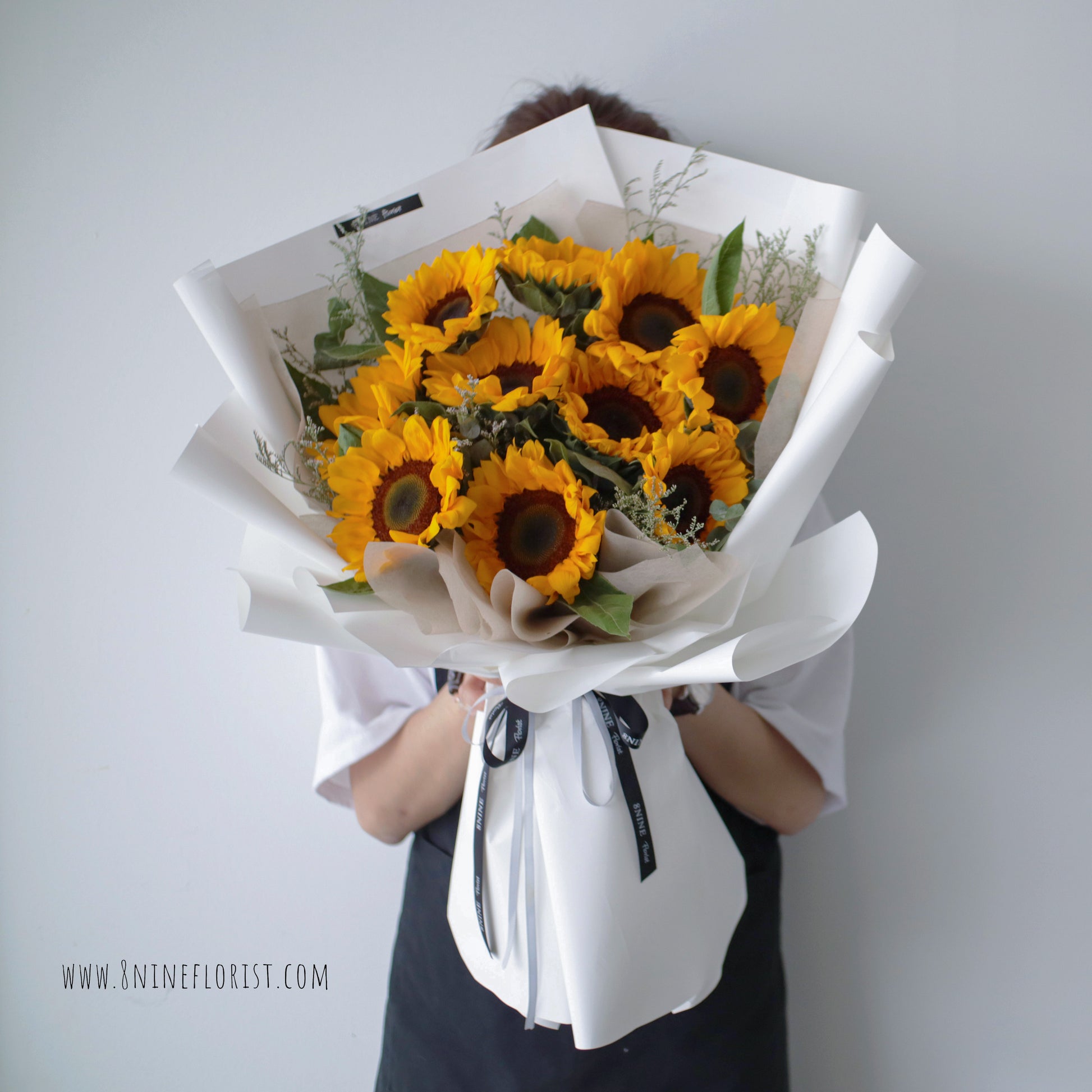 - This 10 stalks Sun Flower bouquet features Sunflowers with a touch of Caspia leaves.