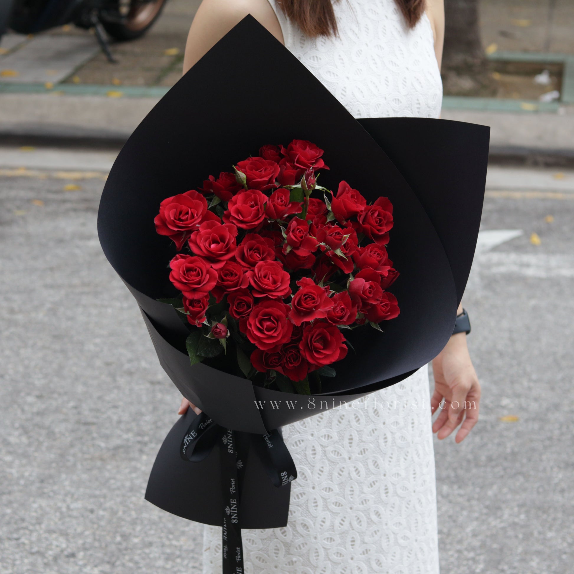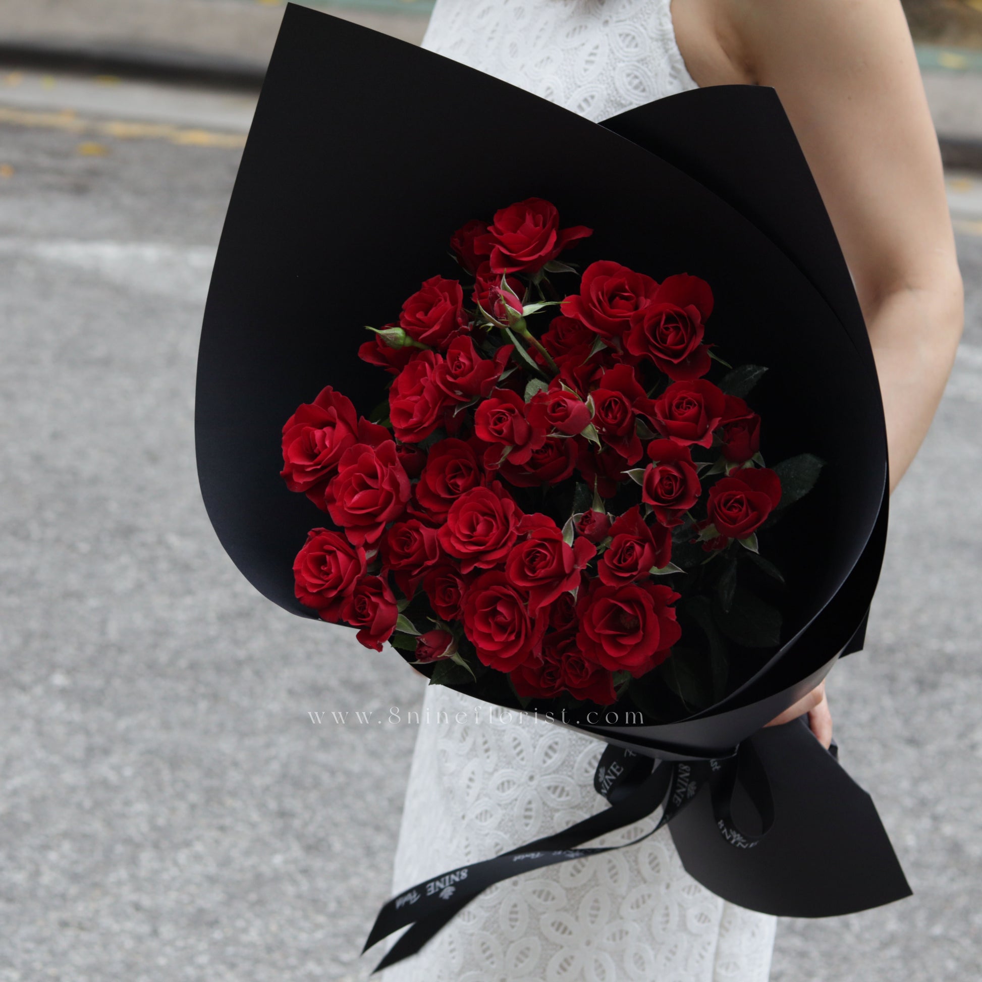 - This flower bouquet features Red Spray Roses with a touch of premium wrapping paper.