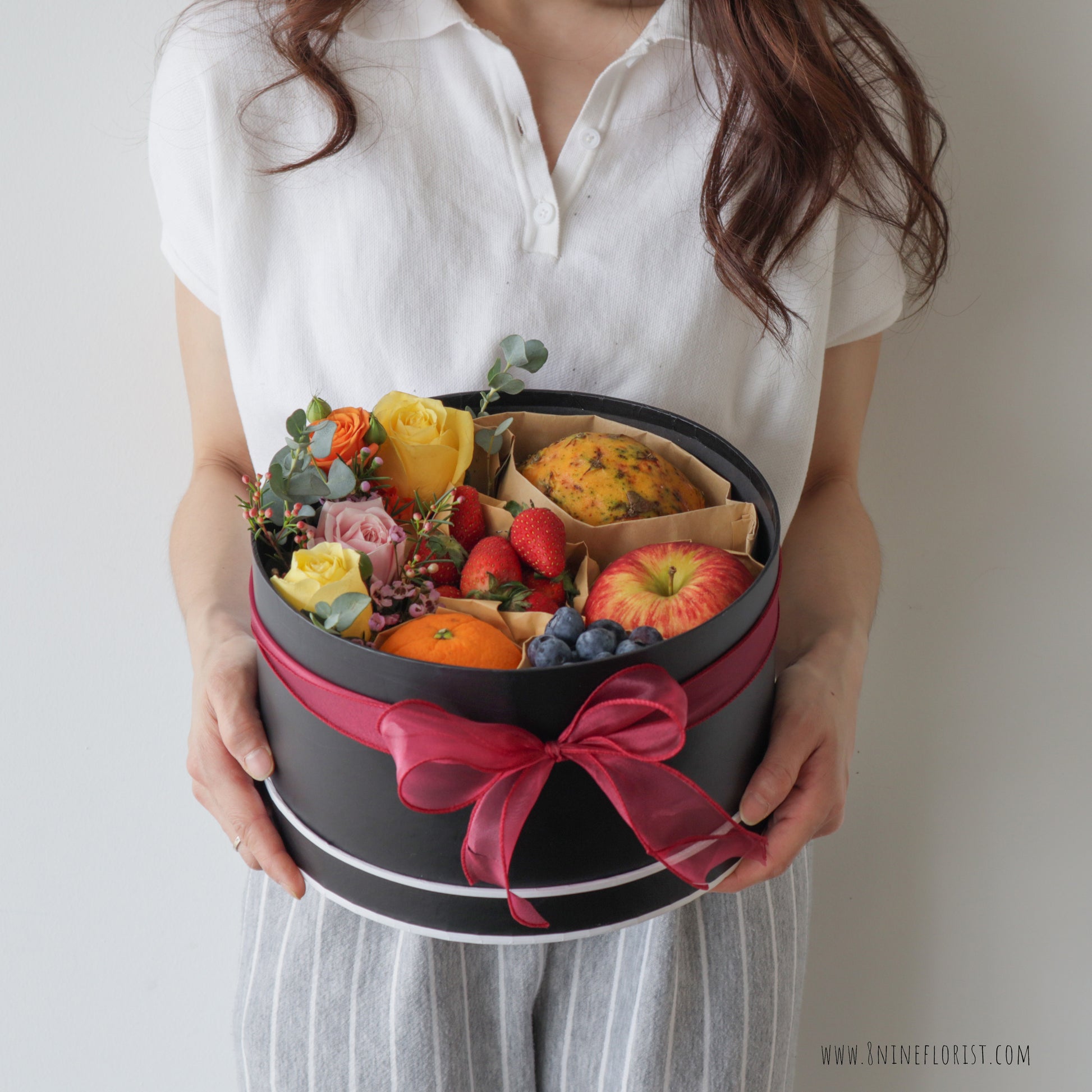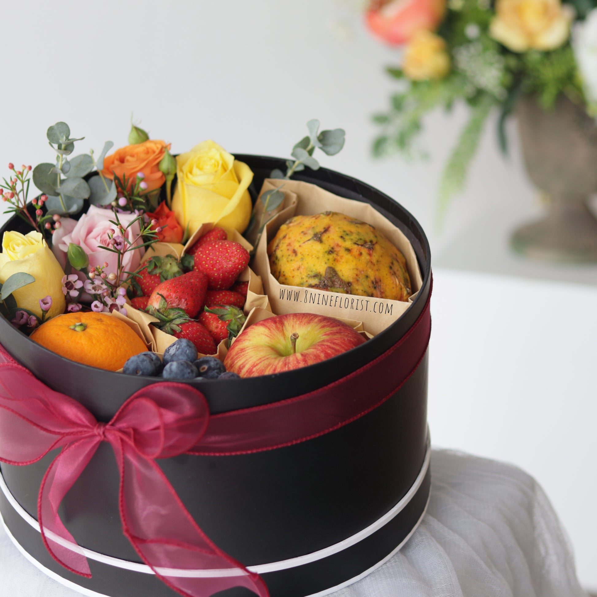 - A blessing fruit box specially arranged with beautiful blooms, smiles are guaranteed to your loved one with this warming gift.
